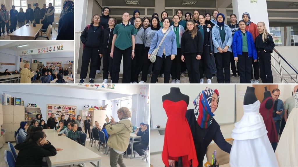 Mesleğim Hayatım sloganıyla okulumuz 8.sınıf öğrencileri ile İlduş Hatun Kız Mesleki ve Teknik Anadolu Lisesine ziyaret gerçekleştirildi. Çocuk Gelişimi, El Sanatları, Dikiş ve Moda Tasarımı, Yiyecek ve İçecek atölyeleri yerinde incelenerek öğrencilerimiz tarafından tanıma fırsatı bulundu. Mesleklerin İstihdam ve işyeri açma imkânları hakkında bilgi edinildi.